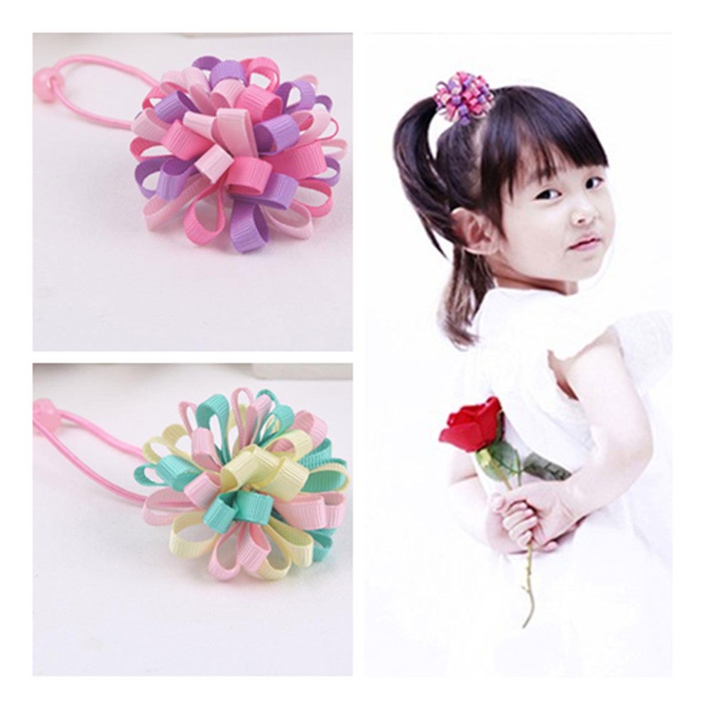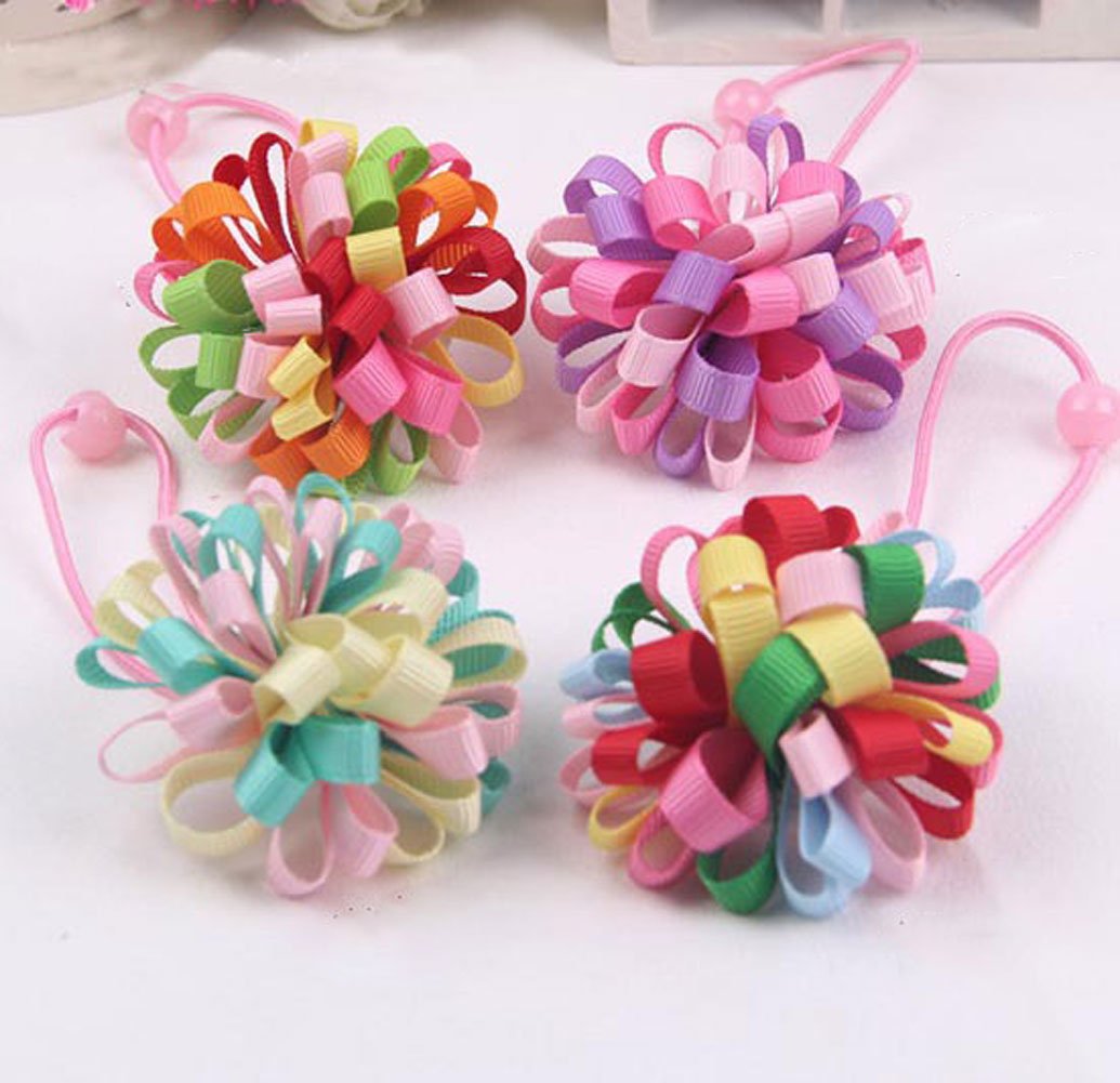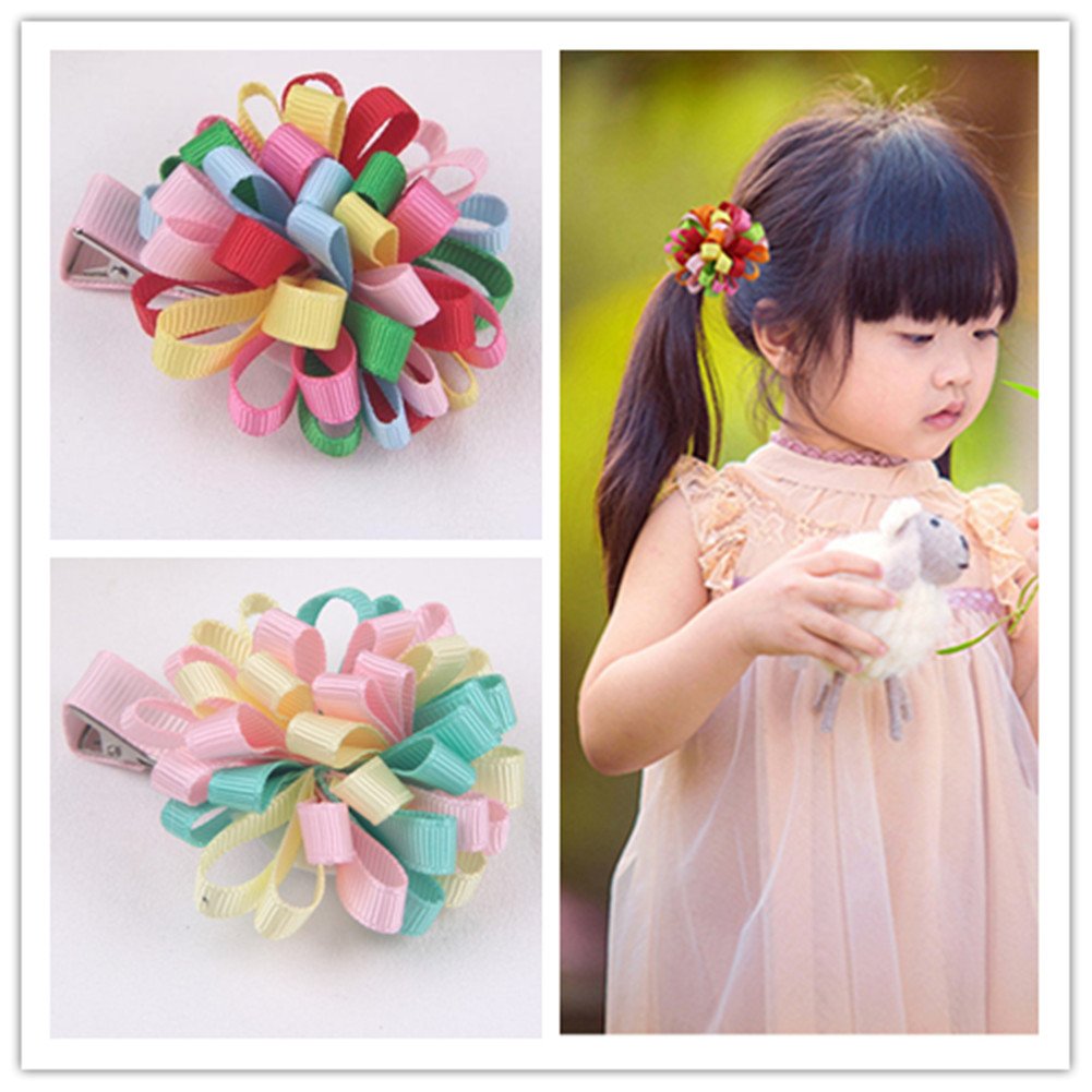 It is a cute flower motif hair style decorated with ribbon of various colors