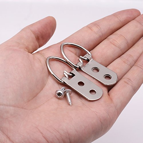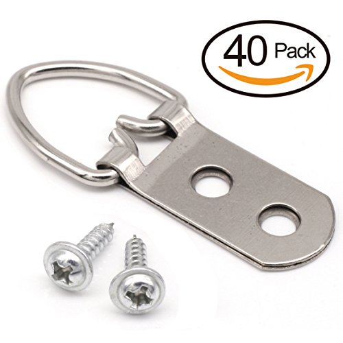 Jetovo 40 Pcs Heavy Duty D Ring Picture Frame Hanging Hangers Double Hole with 80 Pcs Screws