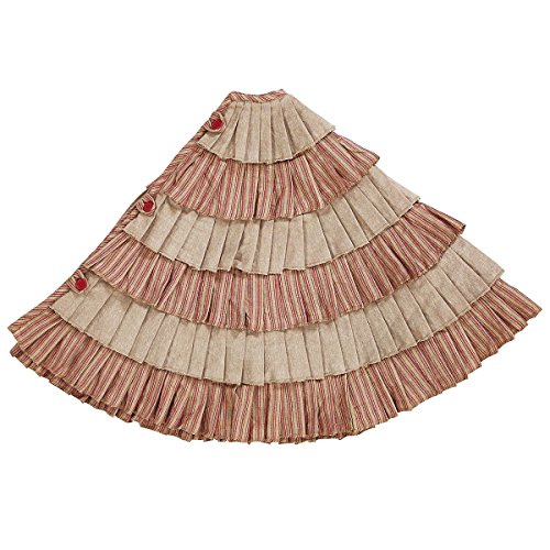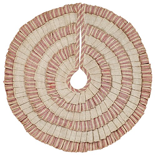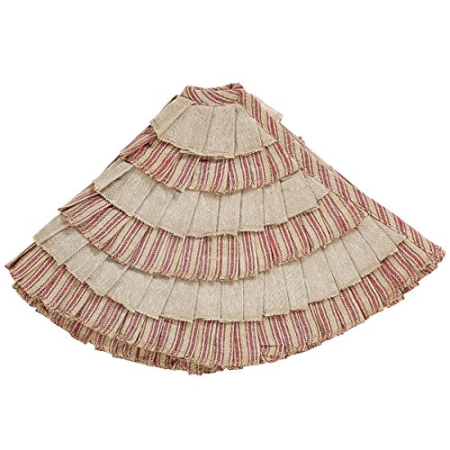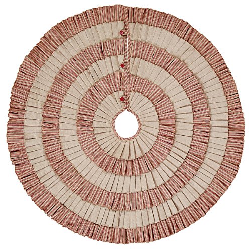 Red and Natural Burlap Khaki Ruffle Christmas Tree Skirt, 50 Inches, Holiday Decoration