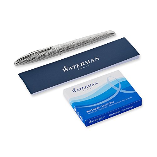 Studio : Waterman Publisher : Waterman Binding : Office Product Product Description WATERMAN Carene Fountain Pen, Essential Silver with Silver Trim, Medium Nib (S0909850). Pure fluid curves conjure the sleek lines and billowing sails of a luxury yacht. The unique integrated rhodium-plated 18-carat solid gold nib evokes a plunging bow navigating infinite possibilities of a pure white page. Monochrome and immaculate, rippled luminescent silver curves, fringed with palladium-plated trims, radiate the rich creativity of WATERMAN design Skilfully made in France, every WATERMAN pen echoes the genius of founder Lewis Edson WATERMAN, inventor of the first reliable fountain pen in 1883. Comes with a 3-year international warranty, which may be extended to 5 years with registration. 0