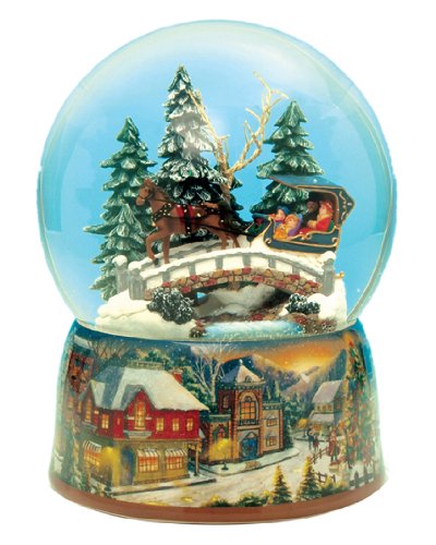 MusicBox Kingdom 48040 Sleigh Ride Snow Globe Music Box Swirls Automatically to The Melody "O du Frohliche"