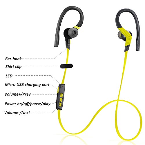 -. Title : Bluetooth Headphones, TONESOUL Wireless Sports In-ear Stereo Headsets, Sweat-proof Earbuds-Yellow