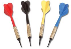 -. Feature : Commercial quality soft tip darts for home game room / Assorted color dart set - pack of 12 / 3 each color - Red, Blue, Black, Yellow / 1/4" black replaceable tip / 13-gram weight; Threaded brass collar