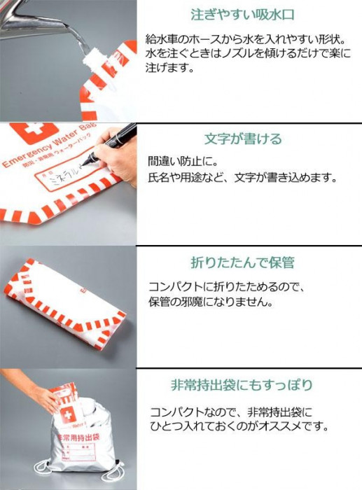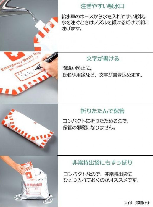 | 断水・災害時に便利!!常備しておきたいウォーターバッグ。 |