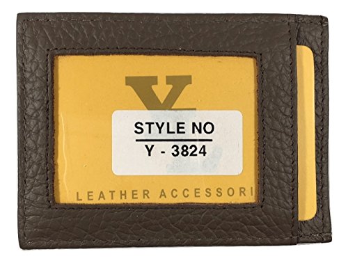 -. Feature : Dimensions: 3.75" x 2.75" x.33" approx / Color: Brown Leather / Hybrid Money Clip & ID Wallet / Double Stitched ID Holder/Credit Card Holder / Lightweight