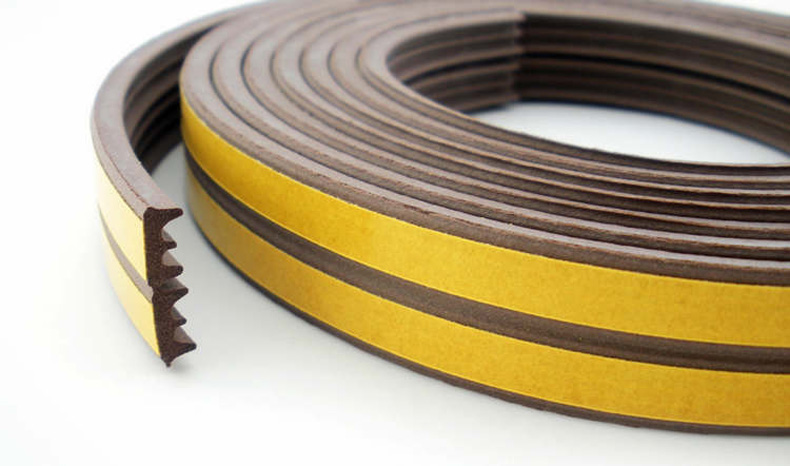 ・窓、ドア用のすき間塞ぎテープE型です。粘着剤付なので、簡単にすぐ貼れ、空調の効きがよくなり省エネ効果を高めるとともに、防音効果があります。