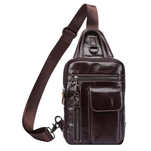 -. Title : Zhhlinyuan First Cowhide Leather Daypack Cross Body Bag Sling Chest Bag for Mens
