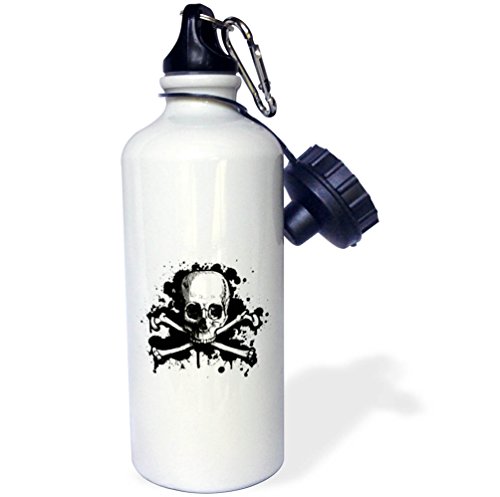 -. Title : 3dRose Russ Billington Designs - Black and White Grunge Skull and Crossbones with Drips and Splats - 21 oz Sports Water Bottle (wb_255208_1)