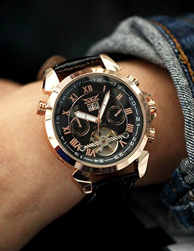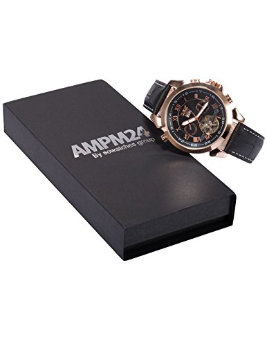 -. Title : AMPM24 ローズ ゴールド メンズ 自動巻き自動機械式 日付&曜日表示 ブラックレザーバンド 腕時計 PMW282