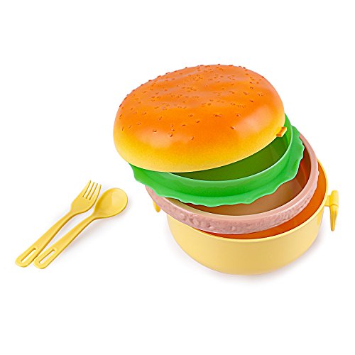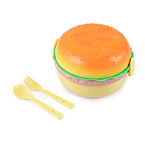 Homespon Kids Lunch Box Cute Hamburger Shape Baby Lunch Container With Spoon and Fork For School Camping Students Snack Food Storage Boxes,2 Pack