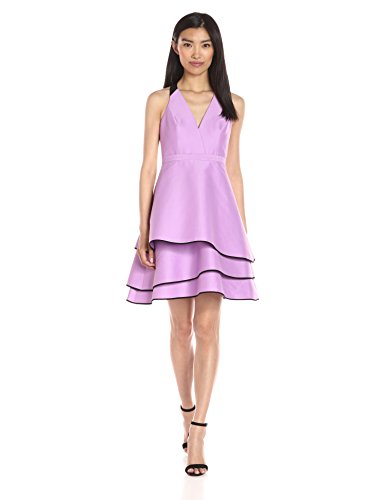 Silk cotton faille halter neck dress with multiple layered skirt