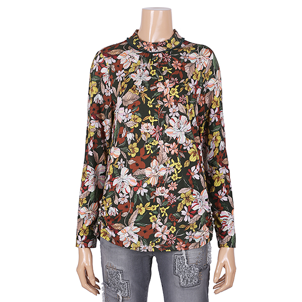 단아하고정갈한사방스판꽃무늬진주장식블라우스