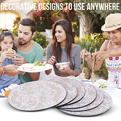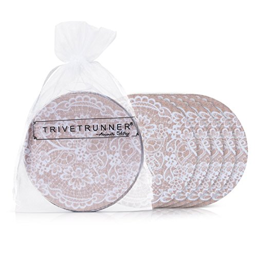 TRIVETRUNNER Jute and Lace Coasters Set of 6 Protect Furniture from Water Marks and Damage (Jute Burlap), 4" W, Large