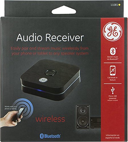 -. Binding : Electronics -. Brand : GE -. Color : Black -. Department : unisex-adult -. EAN : 7608537582018 -. Feature : Simple plug-and-play design / Stream content through your existing home stereo system or stand-alone speakers / Bluetooth connectivity delivers wireless freedom up to 30 ft. / Features a Bluetooth inactive timeout connection of one hour / Delivers freedom to check email or send texts while streaming your favorite music -. IsAutographed : 0 -. IsMemorabilia : 1 -. Label : Jasco -. Manufacturer : Jasco -. Model : 11081 -. MPN : 11081 -. NumberOfItems : 1 -. PackageQuantity : 1 -. PartNumber : 11081 -. ProductGroup : CE -. ProductTypeName : CE_ACCESSORY -. Publisher : Jasco -. Size : 6.7"x6" -. Studio : Jasco -. Title : GE 11081 Home Audio Bluetooth Receiver -. UPC : 785528156520
