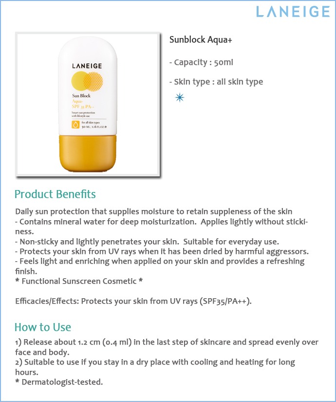 [LANEIGE] Sunblock Aqua+ SPF35 PA++ 50ml / Water Drop / Moisture Sun cream
