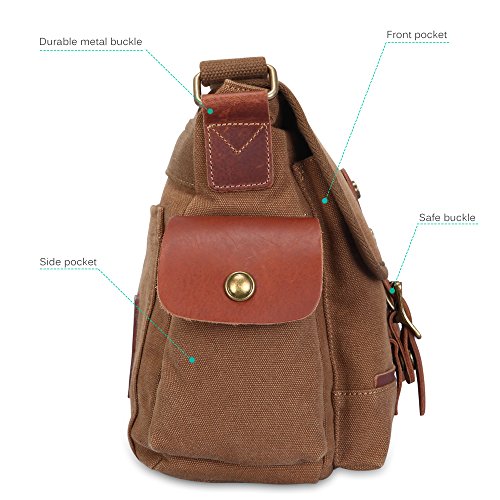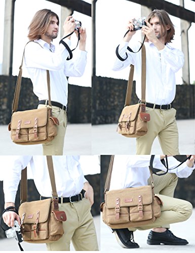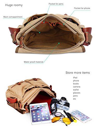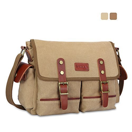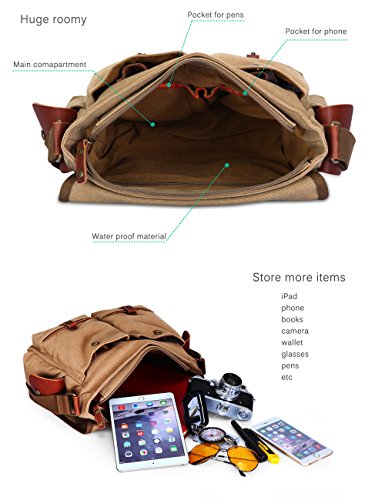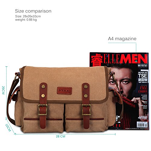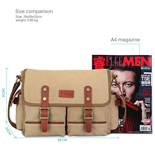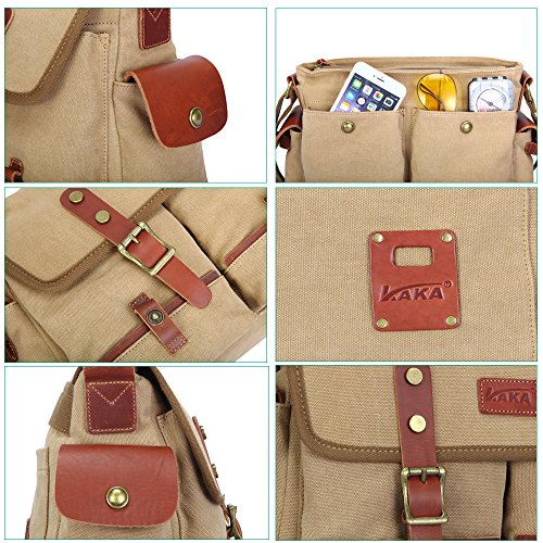 -. Binding : Personal Computers -. Brand : KAKA -. Feature : Material:High Density Pure Cotton Canvas Water Wash with Crazy Horse Leather Trim / Storage space: Multiple exterior & interior pockets & slots with Adjustable shoulder straps,Side pockets have metal retro button which can keep things more steady without leak out for easy access / Retro eco-friendly casual life tyle, large size with multiple pockets, ideal for keeping personal belongings,Minimal design without excess bulk. / Retro Mens Army Outdoor Adjustable Shoulder Strap School College genuine Crazy Horse Leather Travel Accessories,Versatility to fit dynamic lifestyle: For school, work, business,commute, & travel etc. / For Apple Macbook Pro and Air, Ultrabooks, Notebook PCs, Laptop Computers, Netbooks - 10, 11, 11.6, 12, 13, 13.3 -. Label : KAKA -. Manufacturer : KAKA -. ProductGroup : PC Accessory -. ProductTypeName : CARRYING_CASE_OR_BAG -. Publisher : KAKA -. Studio : KAKA -. Title : KAKA Men Vintage Casual Leather Canvas Messenger Handbag Shoulder Bag,Premium Cotton Canvas With Crazy Horse Trim,Fits Up To 13.3 inch laptop bag/Macbook/Tablets/ipad pro/Surface Book