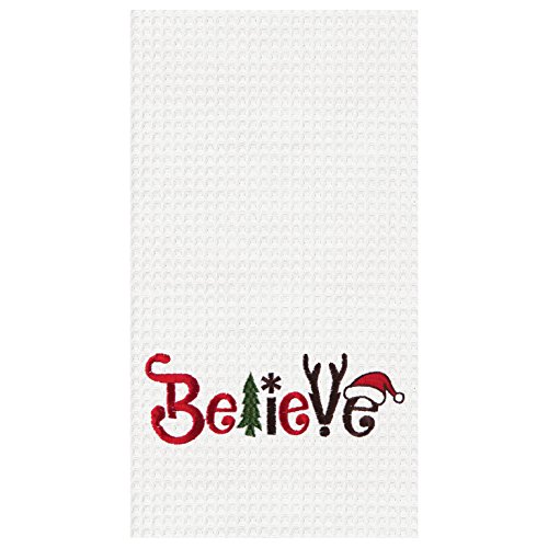Believe Icon Christmas Waffle Weave Kitchen Towel