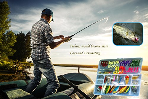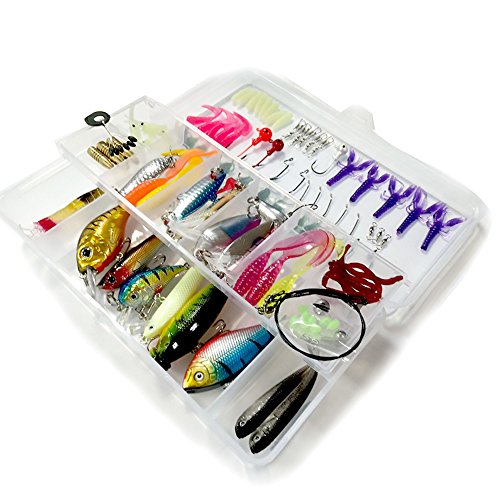 -. Title : 101-Pcs Fishing Lures Kit Set For Bass,Trout,Salmon,Including Spoon Lures ,Soft Plastic worms, CrankBait,Jigs,Topwater Lures (with Free Tackle Box) -by Saimanqiu