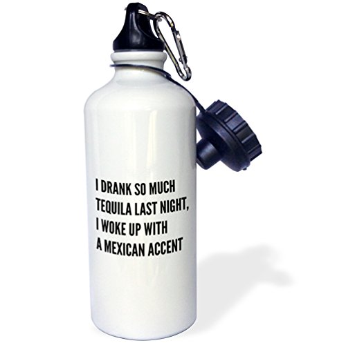 3dRose wb_221843_1 "I drank so much tequila last night with black print" Sports Water Bottle, 21 oz, White