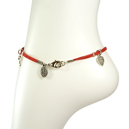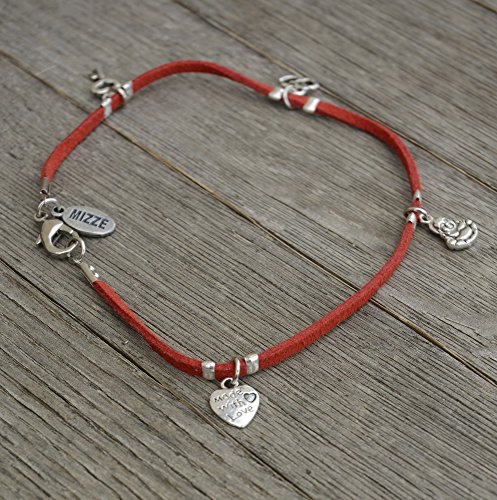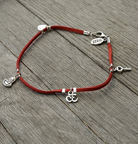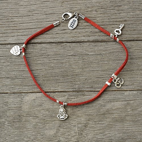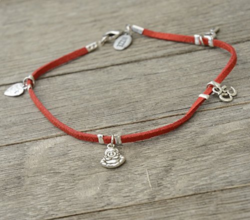 -. Feature : HANDMADE SUEDE LEATHER ANKLET WITH CHARMS: The red suede anklet is made with the Hamsa Hand for protection, Fat Buddha, Om and Happy Feet. / FAT BUDDHA CHARM ANKLET FOR GOOD LUCK: Admired for his happiness, plenitude, and wisdom of contentment. In folklore rubbing the Fat Buddha belly brings wealth, good luck, and prosperity. / SINGLE STRAND ANKLET COMFORT FIT: The anklet is 11" (28 CM) in length with a lobster claw clasp for a comfortable fit. / QUALITY POLISHED SILVER PLATED CHARMS: The charms have a quality polished silver plating finish. / 100% FULL MONEY BACK MIZZE GUARANTEE: MIZZE Made for Luck Jewelry stands behind our brand and provides a 100% full money back guarantee. If you are unhappy with your handmade anklet, for any reason, please contact us!