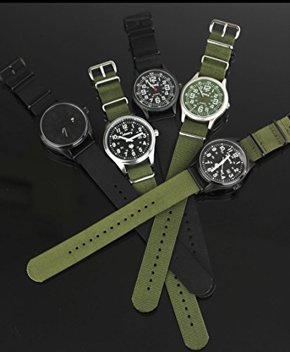 -. Title : INFANTRY 20mm 22mm Nylon Nato Canvas Fabric Watch Band Strap, 4 Rings Stainless Steel Buckle, Black / Green