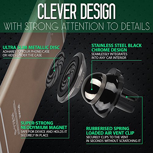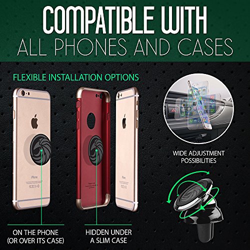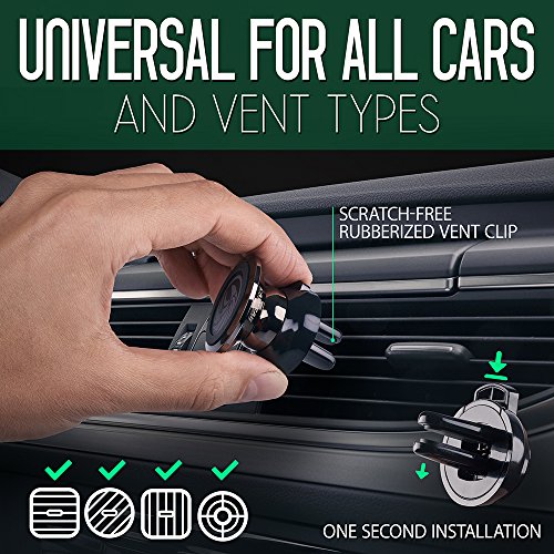 Magnetic Air Vent Car Mount - For any Smartphone (iPhone 8, Android Cell Phone, GPS) | Stylish One-Hand & One-Sec Holder, +100 to Safeness & Comfort