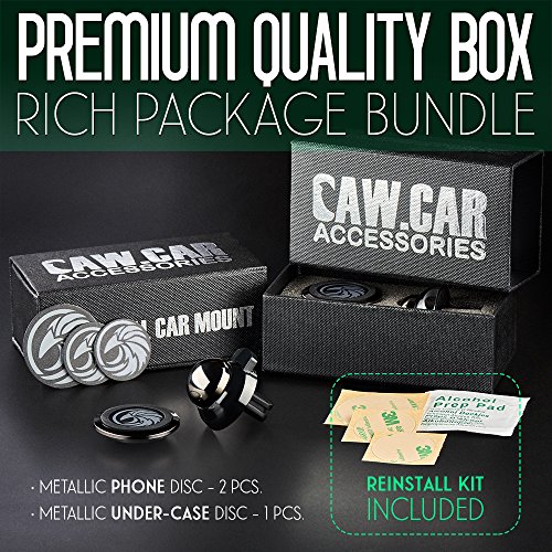 MULTIFUNCTIONAL & LOOKS AWESOME - stylish small Black Chrome car mount looks awesome and performs even better. Disc can adorn your phone or hide under its case.