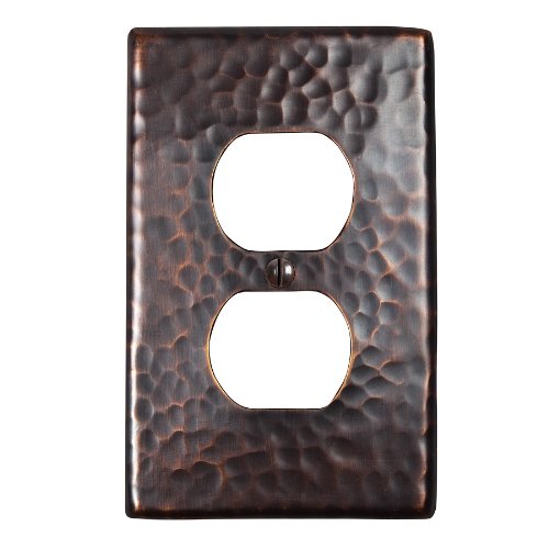 The Copper Factory CF122AN Solid Hammered Copper Single Duplex Receptacle Plate, Antique Copper Finish