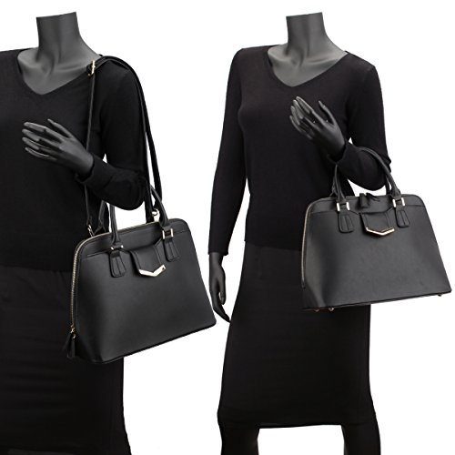 Dasein Designer Dome Satchel Top Handle Shoulder Bag Zip Around Purse Medium w/ Front Pocket