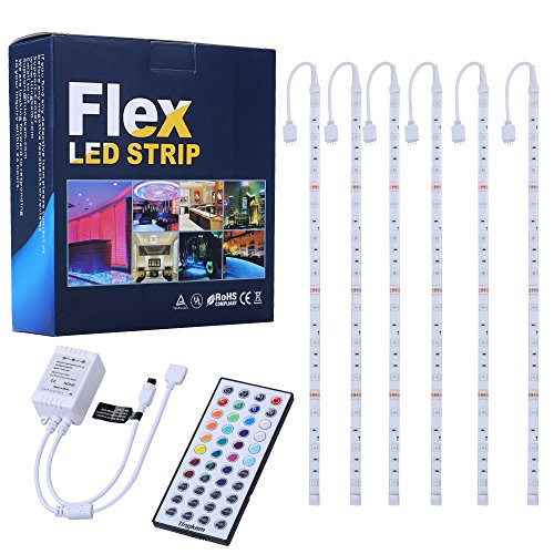 Tingkam set of 6x 40cm 12V RGB led strip lighting under kitchen cupboard cabinet shelf display light kit