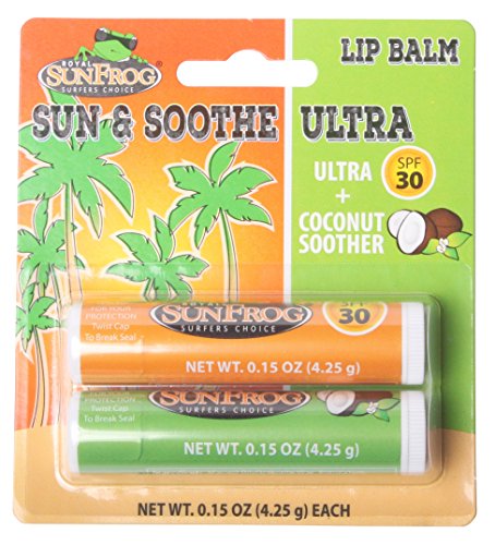 BEFORE AND AFTER SUN:: Helps prevent sunburn. Helps prevent and temporarily protect dry, chapped or windburned lips. HIGH QUALITY, LOW COST: Enjoy the benefits of SunFrog at half price of the competition! All ingredients are sourced responsibly and manufactured in a regulated facility. Don't waste money on expensive brand names, buy SunFrog today! PERFECT FOR:: swimming, sun bathing, skiing, camping, outdoor activities. Just apply the ultra lip balm before venturing into the sun and reapply as needed. Apply the coconut soother after your time in the sun! MULTI PACK:: 6 Ultra Lip Balm SPF-30 & 6 Coconut Soother (12 total tubes) allows for everyone in the family to have their own set. MADE IN THE USA:: in an FDA-regulated facility. GMP certified. Never tested on animals. Microbiology testing on every batch. Meets or exceeds US Pharmacopeia (USP) requirements.Feature