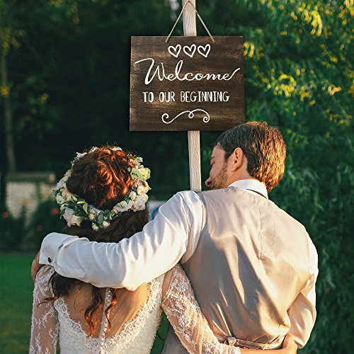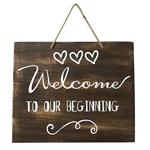 JennyGems Rustic Distressed Welcome To Our Beginning Sign - Weddings, House Warming Party Sign