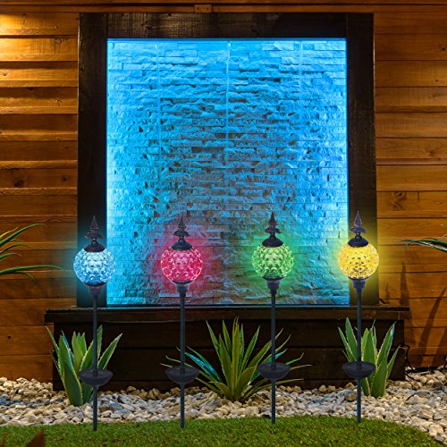 - MOST DURABLE DECORATIVE GARDEN ACCENTS: Unlike other LED accent decorative lights that are made using cheap plastic, ours feature a rust-proof iron stake and an extra-heavy crackle ball made of real glass. The weatherproof body withstands rain, shine and snow to work perfectly through all the seasons.