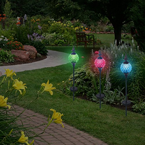 - MESMERIZING LIGHT AND SPIN SHOW: Make your front lawn or garden a visual feast with our all-new solar outdoor accent lights. Not only do they come with vibrant LEDs that cycle through 7 eye-catching colors but the whole crackle glass ball also rotates to complete the spectacle. Get yourself the most stunning LED yard decorations in the market.