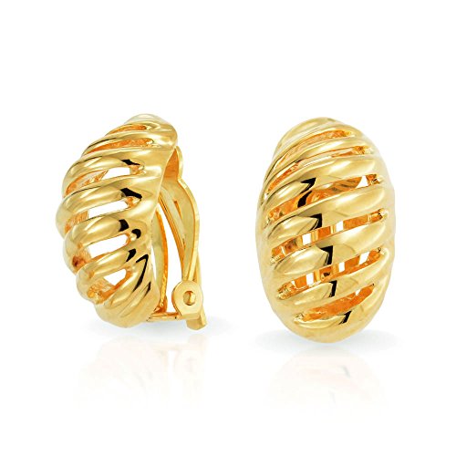 blink 쥬얼리 금 도금 합금제 스트라이프 컷 아웃 연마 마무리 반원형 클립 귀걸이