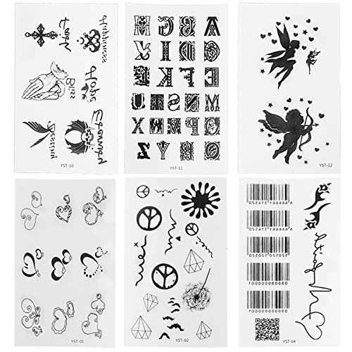 SQDeal 18 Sheets Fashion Black Unisex Pattern Removable Premium Waterproof Temporary Tattoo Body Art Stickers Various Cool Symbols: Skull/Sun/Stars/Anchor/Angel/Cupid etc.