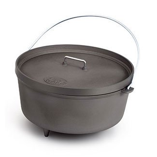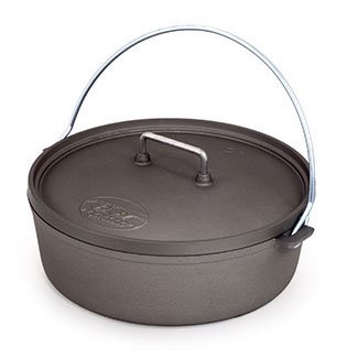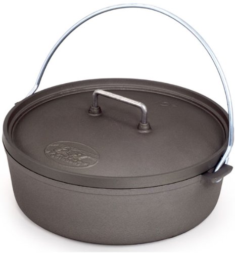 Amazon.com Product Description Cooking with fire reflects a primal urge, and is far more satisfying than cooking with a camp stove. That's one reason to consider one of GSI's hard-anodized aluminum Dutch ovens, which are 66 percent lighter than cast iron yet still big enough to cook a hearty, crowd-pleasing stew. Aluminum Dutch ovens are ideal for outdoor cooking, with a high-performance, nonreactive construction that cooks slowly and evenly. Cast aluminum is also rust-free and easy to clean, so you don't have to soak the pot for hours to de-grease the interior. And unlike cast iron, no messy seasoning is required when using the GSI pot. Equipped with an edge lip that holds coals and charcoal, the GSI Dutch oven comes in three sizes--10 inches, 12 inches, and 14 inches--with a weight range of 3 pounds 10 ounces (small) to 9 pounds (large).