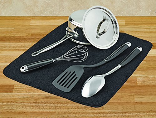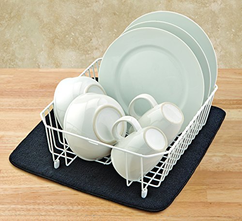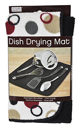 Studio : Kitchen Basics Publisher : Kitchen Basics Binding : Misc. Product Description The Kitchen Basics Dish Drying Mat is the new solution to the age old tradition of placing dish towels on the counter when hand-washing pots, pans, dishes and glassware. It features a center layer of foam that is fused to revolutionary, super-absorbent microfiber fabric using our proprietary manufacturing process. This process yields a mat that is highly functional and incredibly durable, use after use, wash after wash. By combining an optimal foam thickness with terry microfiber fabric, water quickly radiates from the point of contact, enhancing absorption and quickening drying time. You will be amazed by the effectiveness and convenience of this deceptively simple item! The Kitchen Basics Dish Drying Mat is perfect for use underneath a dish rack to catch drips or you can place pots, pans and glassware directly on the mat. You can even set it under small appliances to protect your counter from scratches and scuffs. Available in multiple colors and patterns, the Kitchen Basics Dish Drying Mat will compliment your personal design. The Kitchen Basics Dish Drying Mat is our most economical solution for drip drying dishes. Caring for your Dish Drying Mat is easy; simply toss it in the washing machine with cold water and a liquid detergent and then place in the dryer on a low heat setting. 0