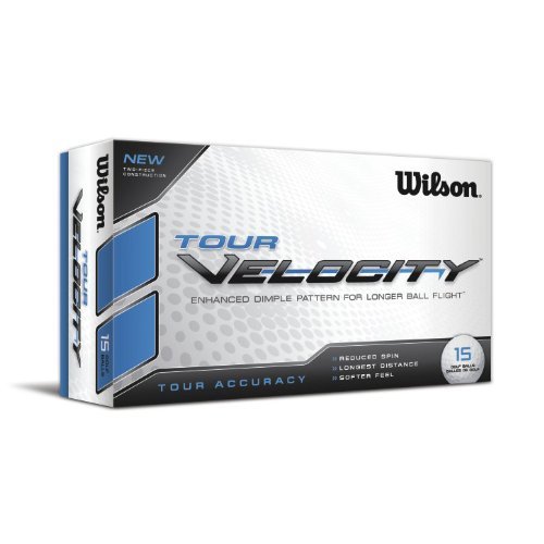 -. Binding : Sports -. Brand : Wilson -. Color : White -. Department : Unisex -. EAN : 0883813902743 -. Feature : Exceptional distance with low compression 70 core construction. The Tour Velocity Accuracy Golf Ball has an advanced two-piece design with enhanced dimple pattern for reduced spin, yielding longer, more straight ball flight It gives players superior distance, feel, and reduced spin for more accurate shots. / Advanced two-piece construction / Hard ionomer cover designed to reduce spin / Reduced spin, excellent distance, and incredible feel / 15-ball pack -. Label : Wilson Sporting Goods -. Manufacturer : Wilson Sporting Goods -. Model : WGWR60200 -. MPN : WGWR60200 -. NumberOfItems : 1 -. PackageQuantity : 1 -. PartNumber : WGWR60200 -. ProductGroup : Sports -. ProductTypeName : SPORTING_GOODS -. Publisher : Wilson Sporting Goods -. ReleaseDate : 2012-12-03 -. Size : One Size -. Studio : Wilson Sporting Goods -. Title : Wilson Tour Velocity Accuracy Golf Ball (15-Pack), White -. UPC : 883813902743