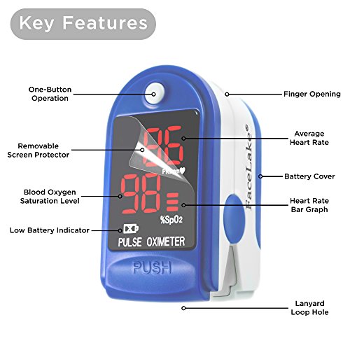 -. Title : FaceLake FL400 Pulse Oximeter with Carrying Case, Batteries, Neck/Wrist Cord - Blue