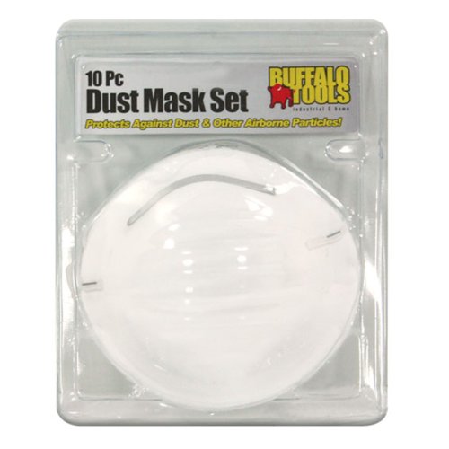 -. Binding : Tools & Home Improvement -. Brand : Buffalo Tools -. Color : White -. EAN : 0027077044584 -. Feature : Protect your lungs from dust and other airborne particles / For projects around the house and home workshop, mowing the lawn, or raking leaves / Offers full mouth and nose protection / Set of 10 single use Dust Masks -. Label : Buffalo Tools -. Manufacturer : Buffalo Tools -. Model : DMSK5 -. MPN : DMSK5 -. NumberOfItems : 1 -. PackageQuantity : 1 -. PartNumber : DMSK5 -. ProductGroup : Home Improvement -. ProductTypeName : TOOLS -. Publisher : Buffalo Tools -. Size : Adult -. Studio : Buffalo Tools -. Title : Buffalo Tools DMSK5 Dust Mask, 10-Piece -. UPC : 027077044584