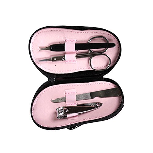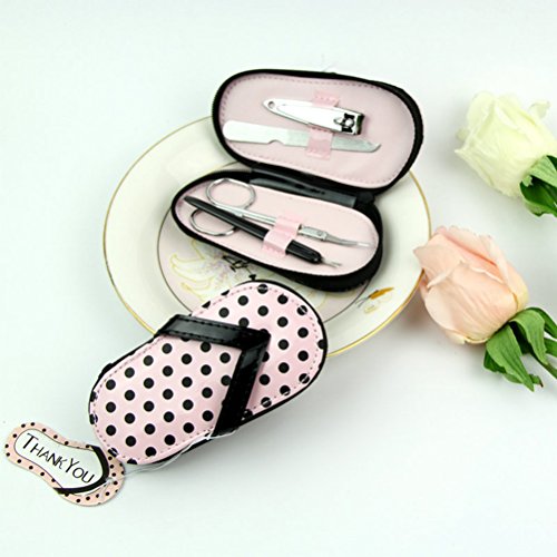 - Color: As shown. - Material: Stainless steel. - Size: 11.5x3.6x6.4cm / 4.5x1.4x2.5inch(LxWxH). - Made of high quality of stainless steel, very well manufactured and extremely sharp. Includes all the essentials for proper nail maintenance. - Essential for your basic need of daily life, make you finger nail more beauty by yourself. Meet your need for normal grooming, manicure or pedicure. - Multi-functional pocket pruning set is easy to use and carry. Perfect for using in daily life at home or travel. - The unique flip-flop, with its cheerful pink and black polka-dot design, highlights your taste. Package Including 1 x Nail file 1 x Scissors 1 x Clippers 1 x Cuticle Instrument 0