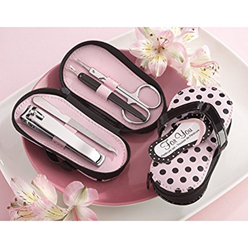 The unique flip-flop, with its cheerful pink and black polka-dot design, contains a handy pedicure set. Multi-functional pocket pruning set is easy to use and carry. It is perfect for using in daily life at home or travel. Made of high quality of stainless steel, they are very well manufactured and extremely sharp. Includes all the essentials for proper nail maintenance.