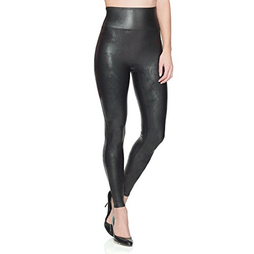 SPANX Ready-To-Wow Faux Leather Leggings with highwaist fit provides a comfortable slimming fit. Product Features: Slimming leggings High-waisted fit Leather look slims silhouette Slimming panel at waist smooths middle Machine wash cold, gentle cycle, inside out Body: 87% nylon, 13% elastane Waist lining: 80% nylon, 20% elastaneFeature