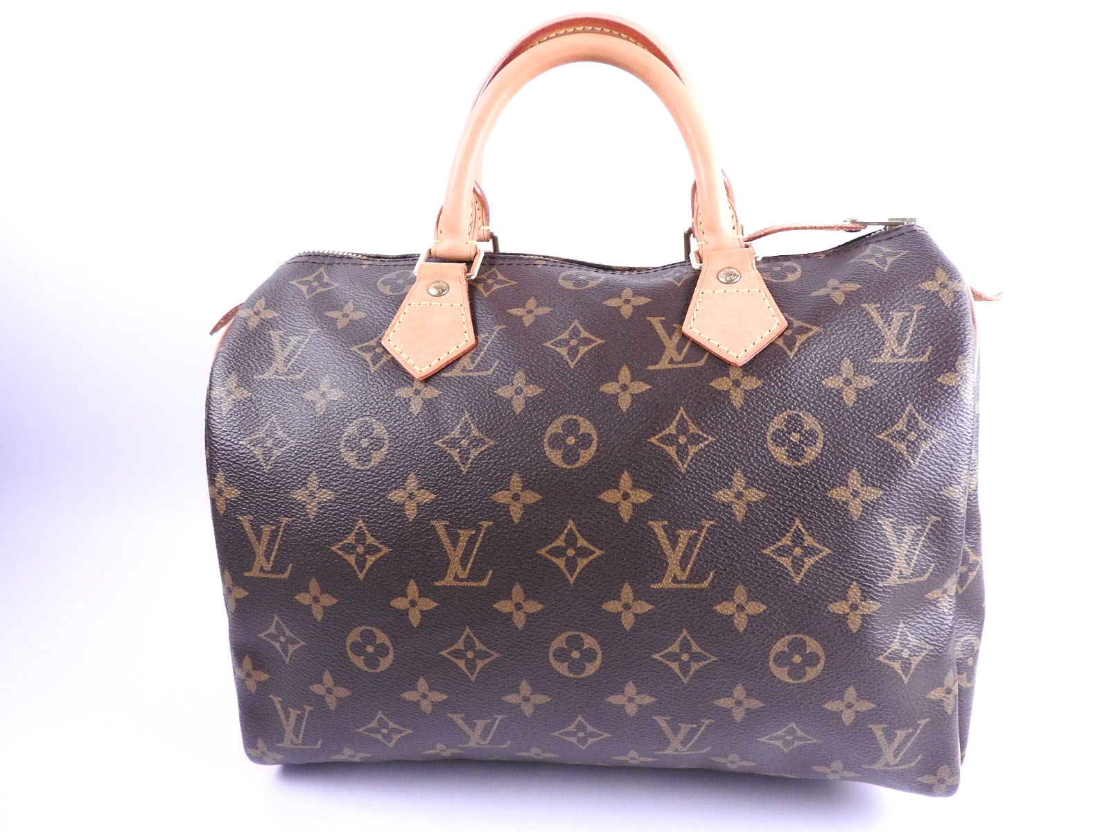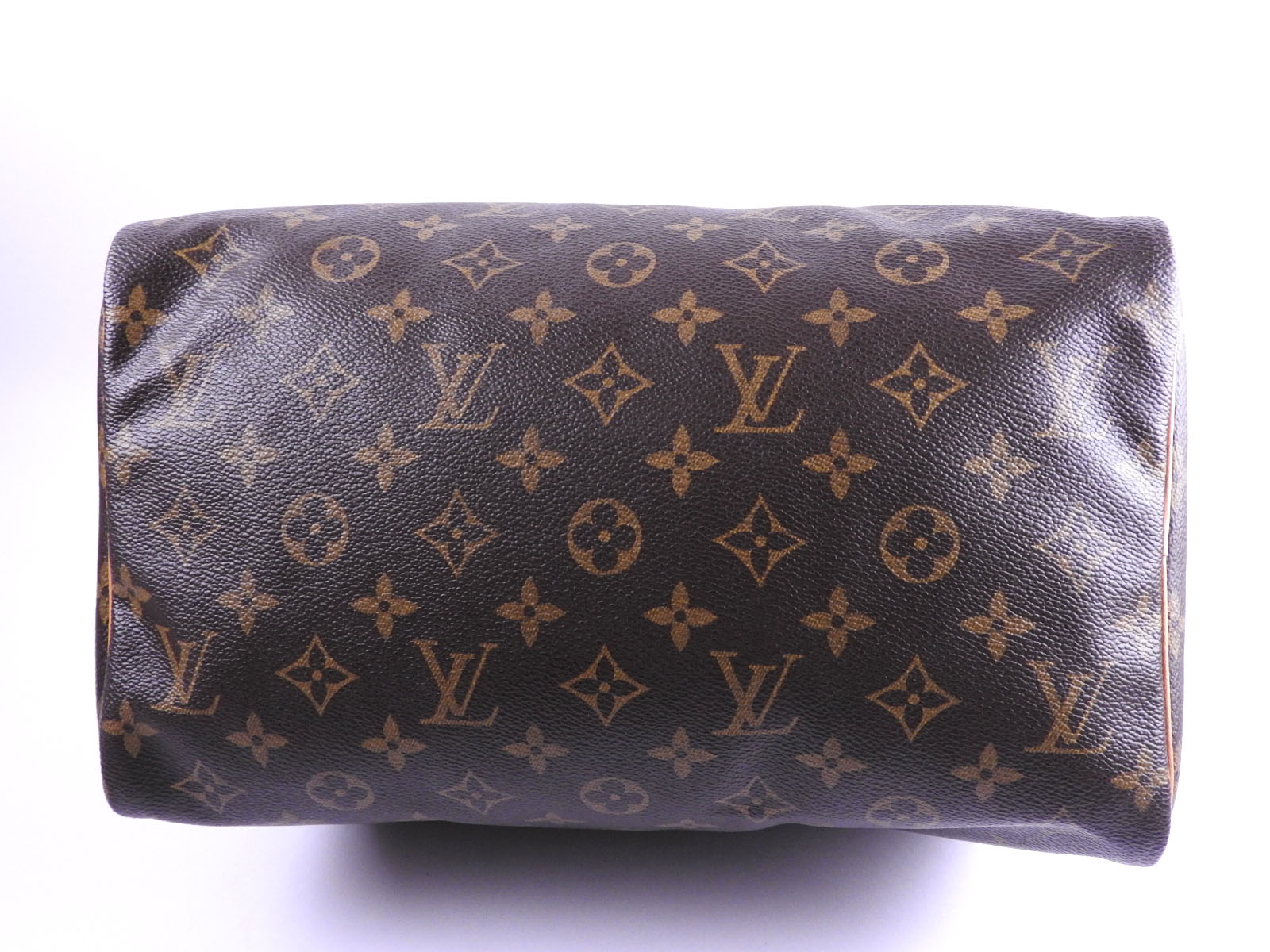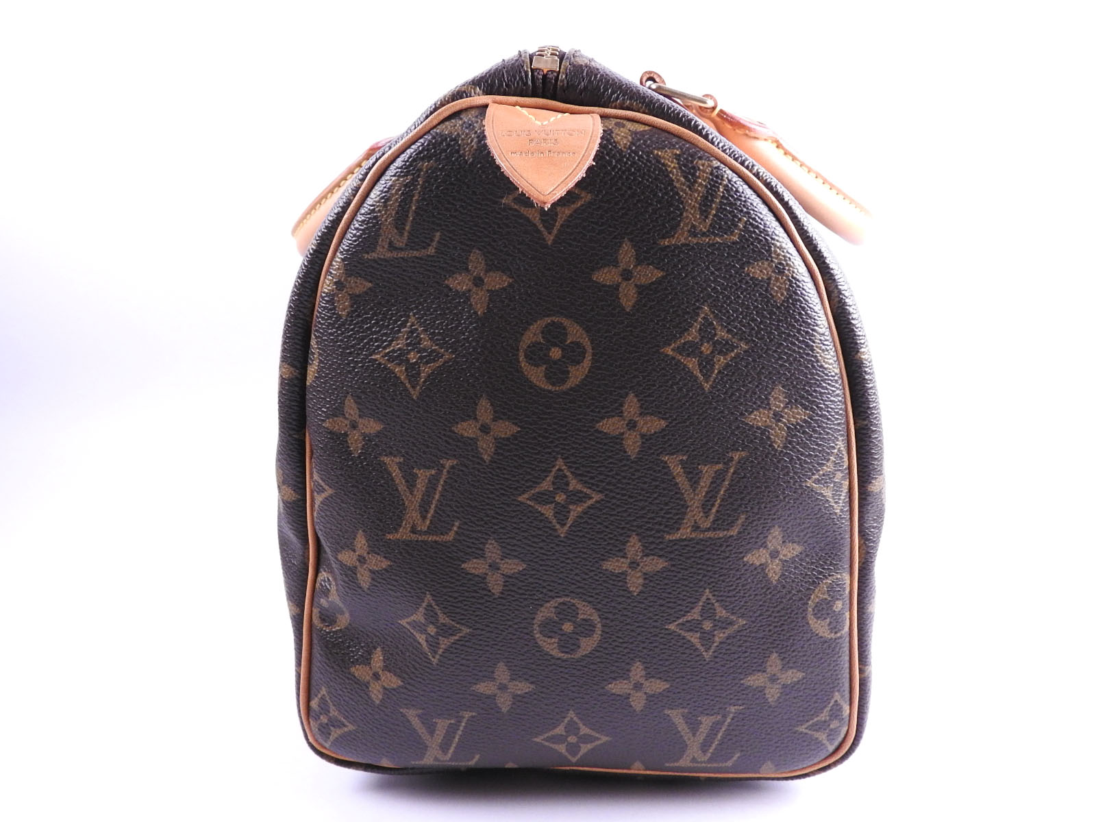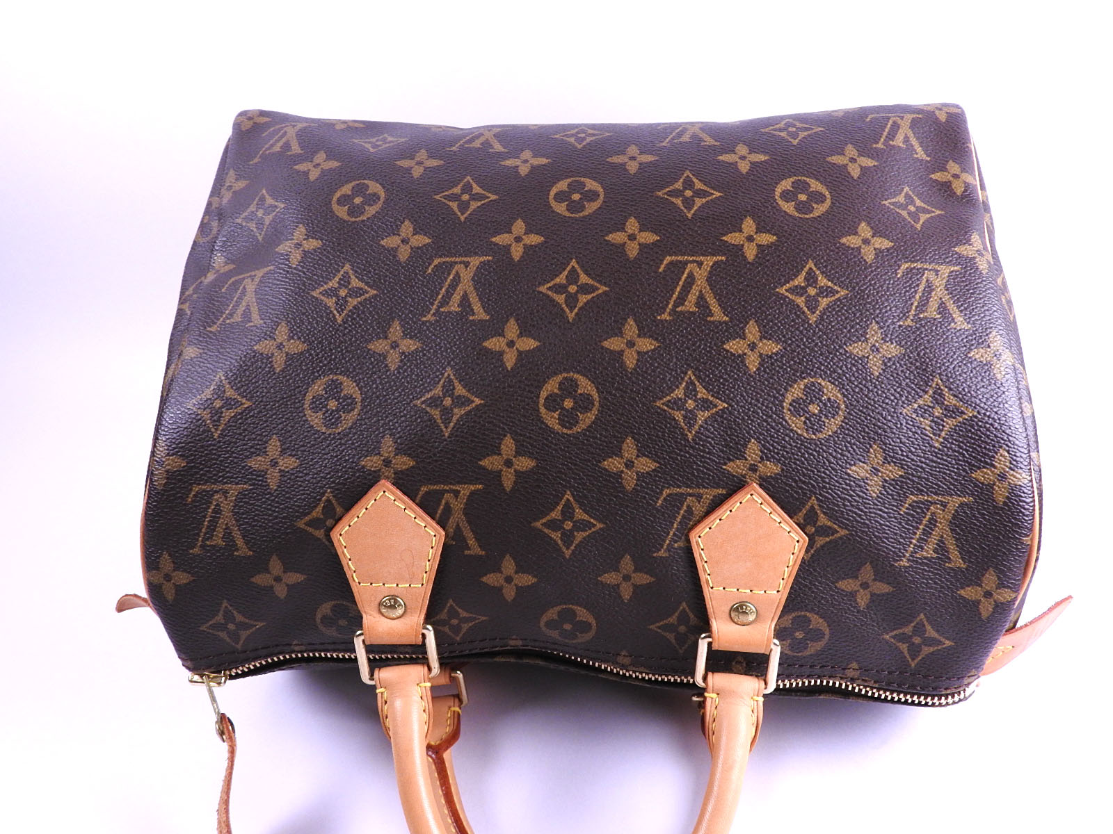 Monogram canvas: Barely used feeling. Slight wrinkles. Leather: Slightly used feeling. Slightly tanned. Small stains, scuffs and wrinkles. |