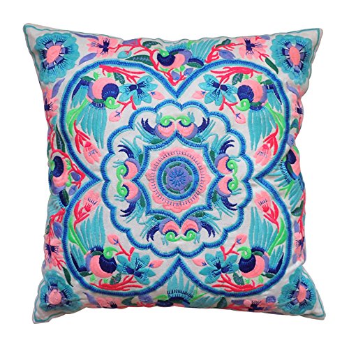 -. Feature : Hochwertig und schön Besticktes Kissen / Canvas-Baumwolle / 40 x 40 cm / Bezug abnehmbar / Kissen im Lieferumfang enthalten
