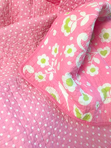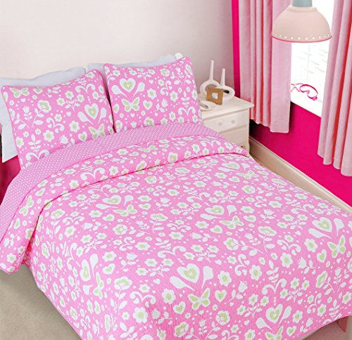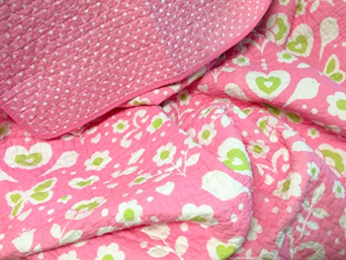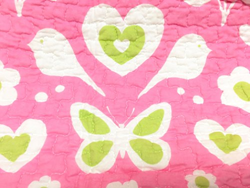 This butterfly flower quilt set features green, pink and white in cute and adorable patterns is perfect for a little girl's bedroom.