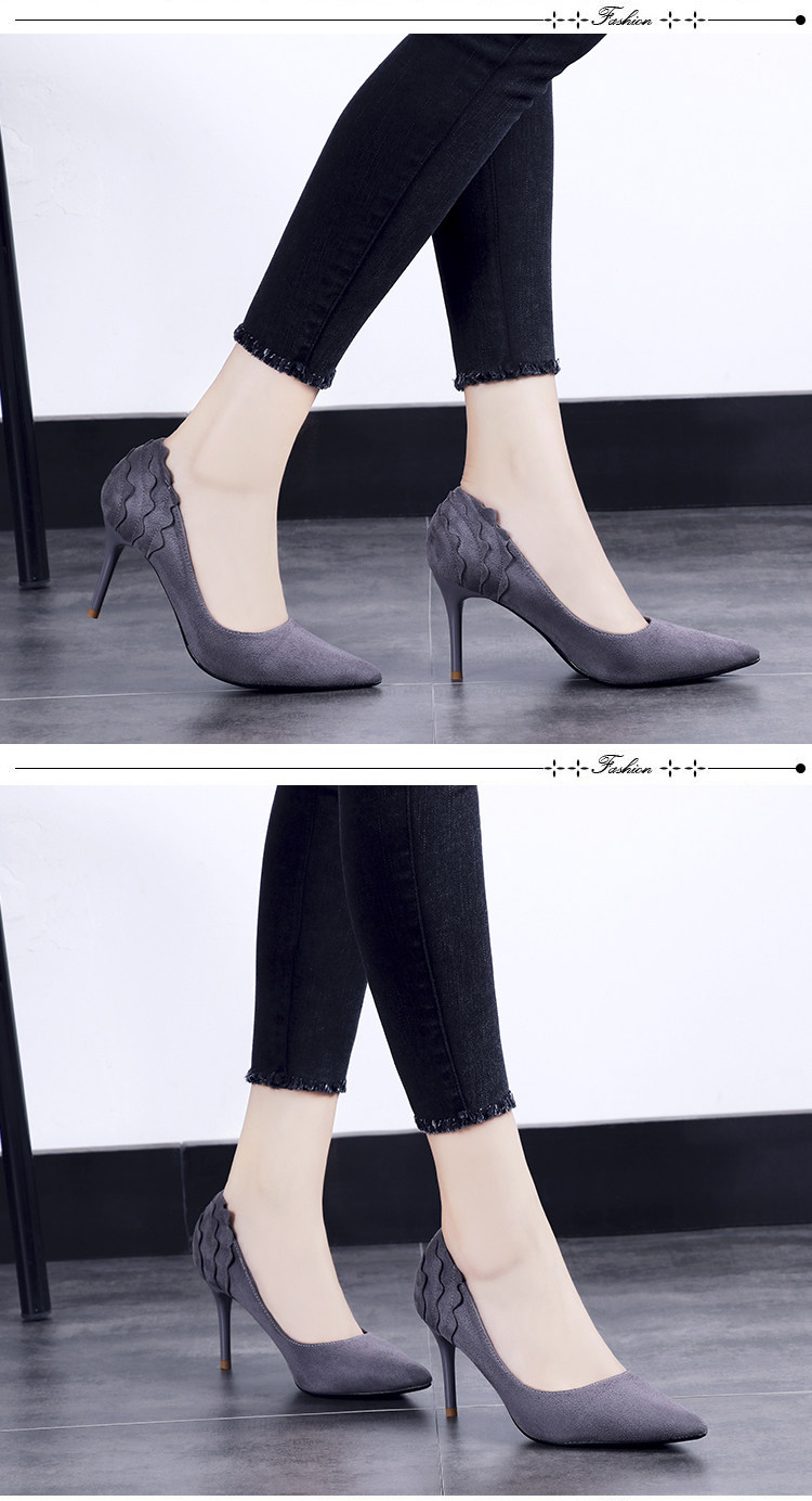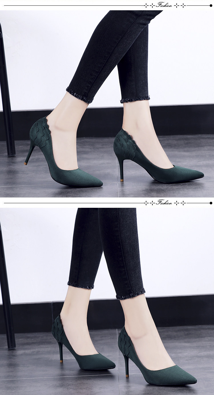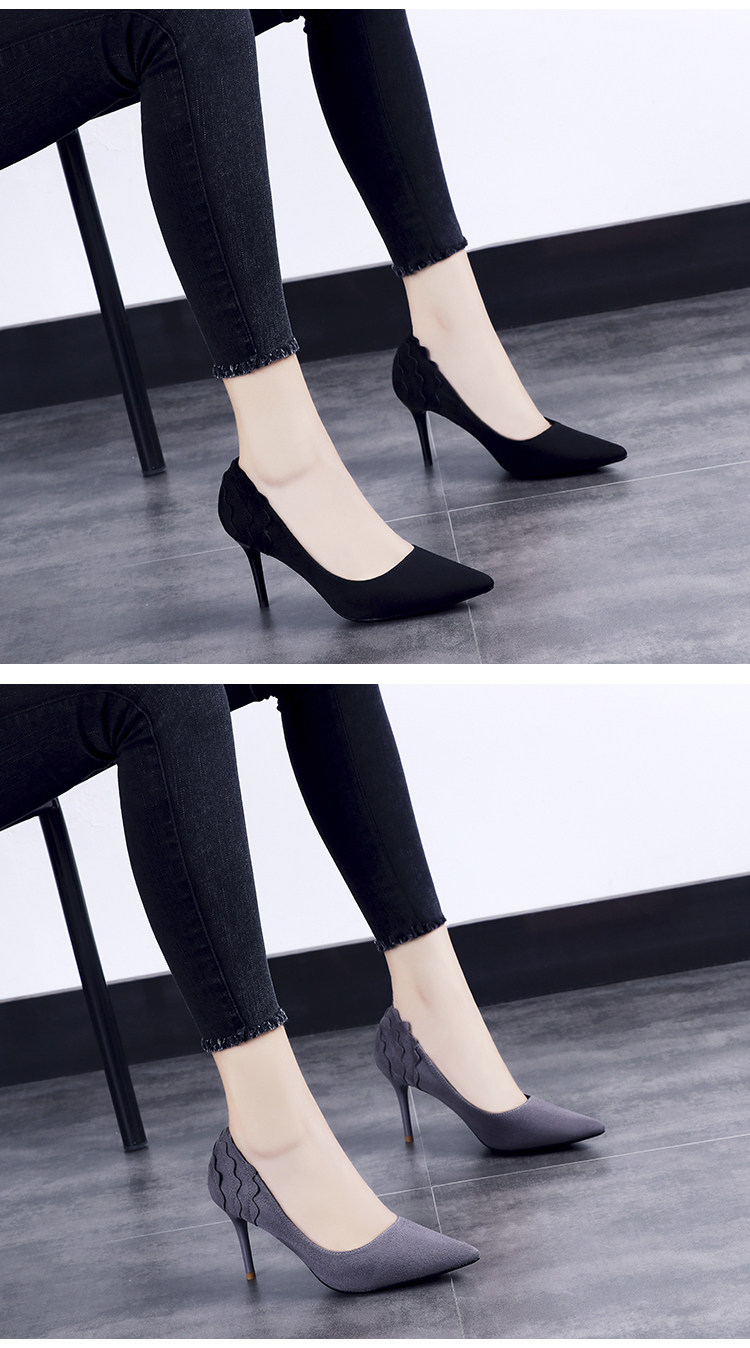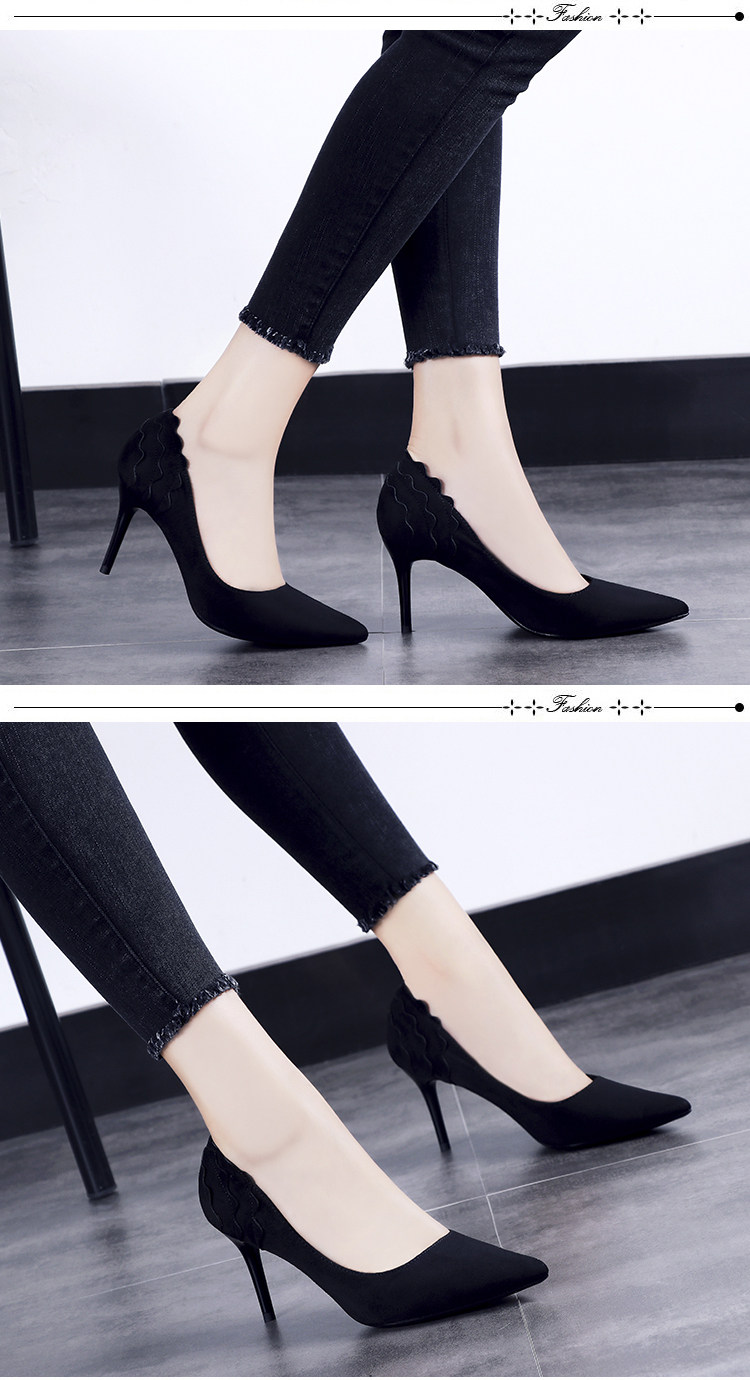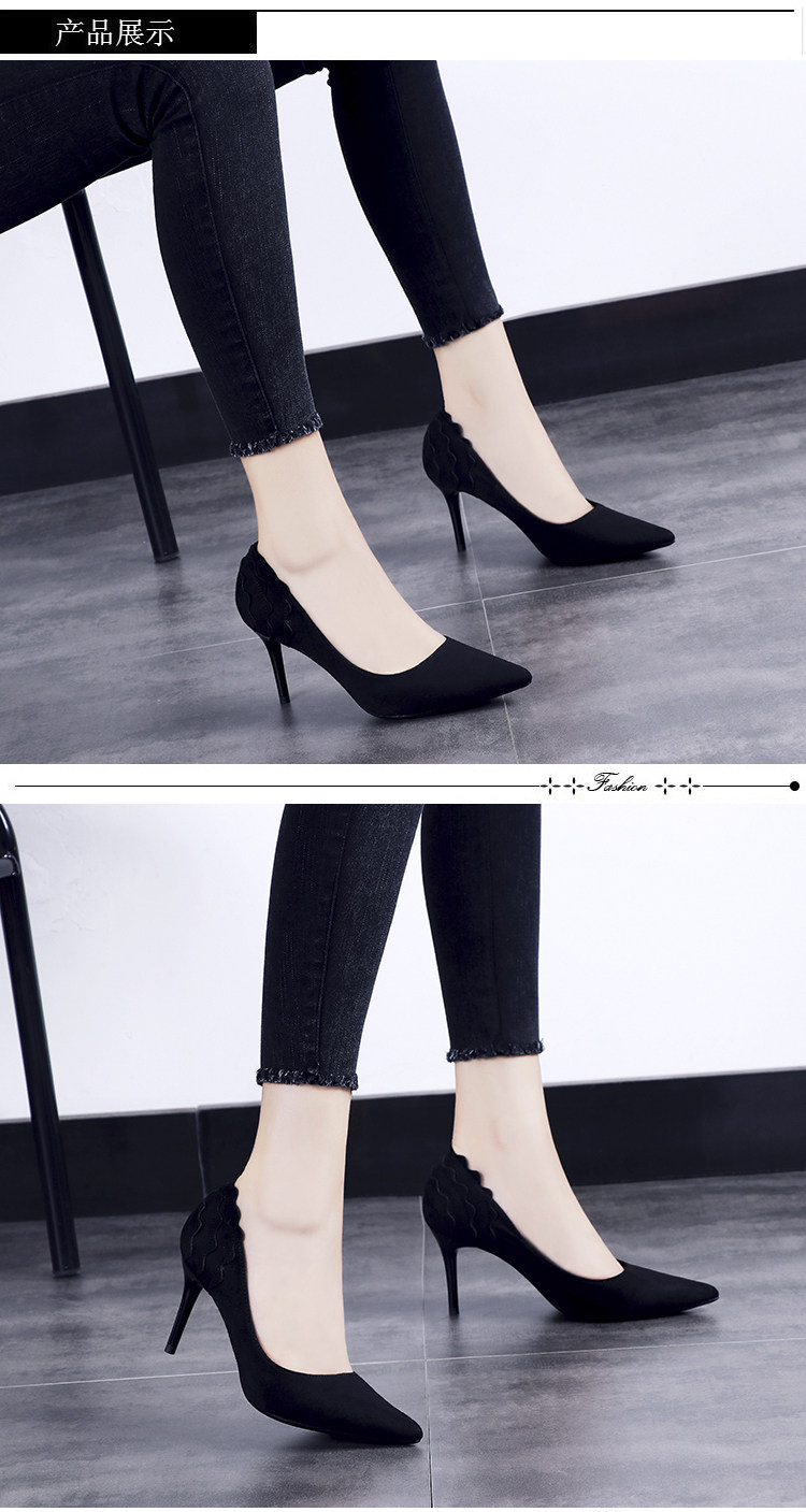 尖头细跟高跟鞋单鞋女夏2018新款韩版百搭绒面黑色秋季春款女鞋子