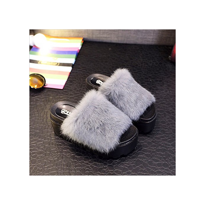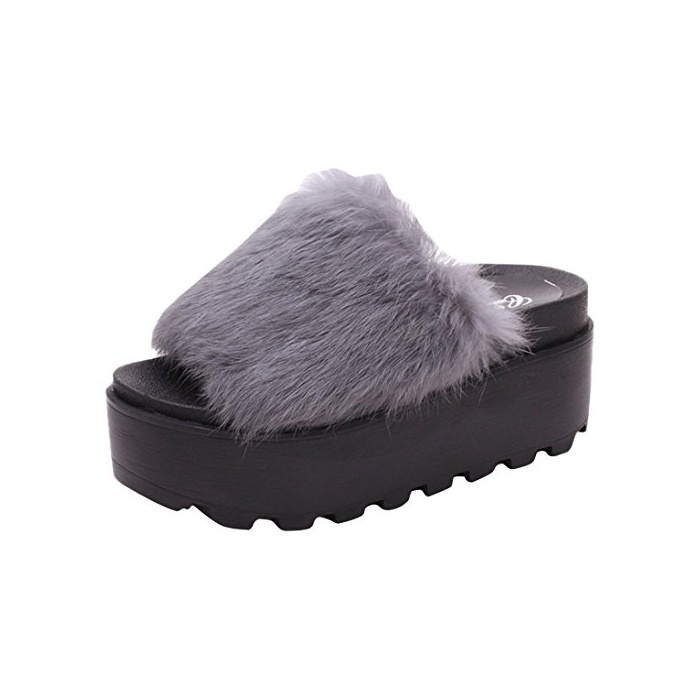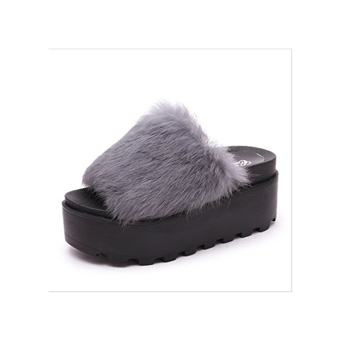 JOYORUN(죠 유 런) 퍼(fur) 플랫화 추신번! 오픈 투 후와(불화) 후와(불화) 모꼬모꼬 초높은 미각(아름다운 다리) Slip-on 그레이23.5cm
