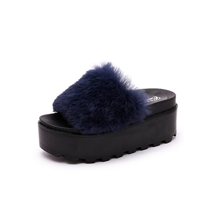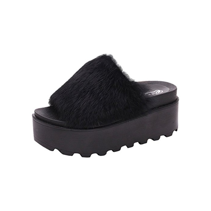 원본상품명: JOYORUN(ジョユラン) ファ?サンダル靴秋新番! オ?プントゥ ふわふわ もこもこ 超厚底 美脚スリッポン